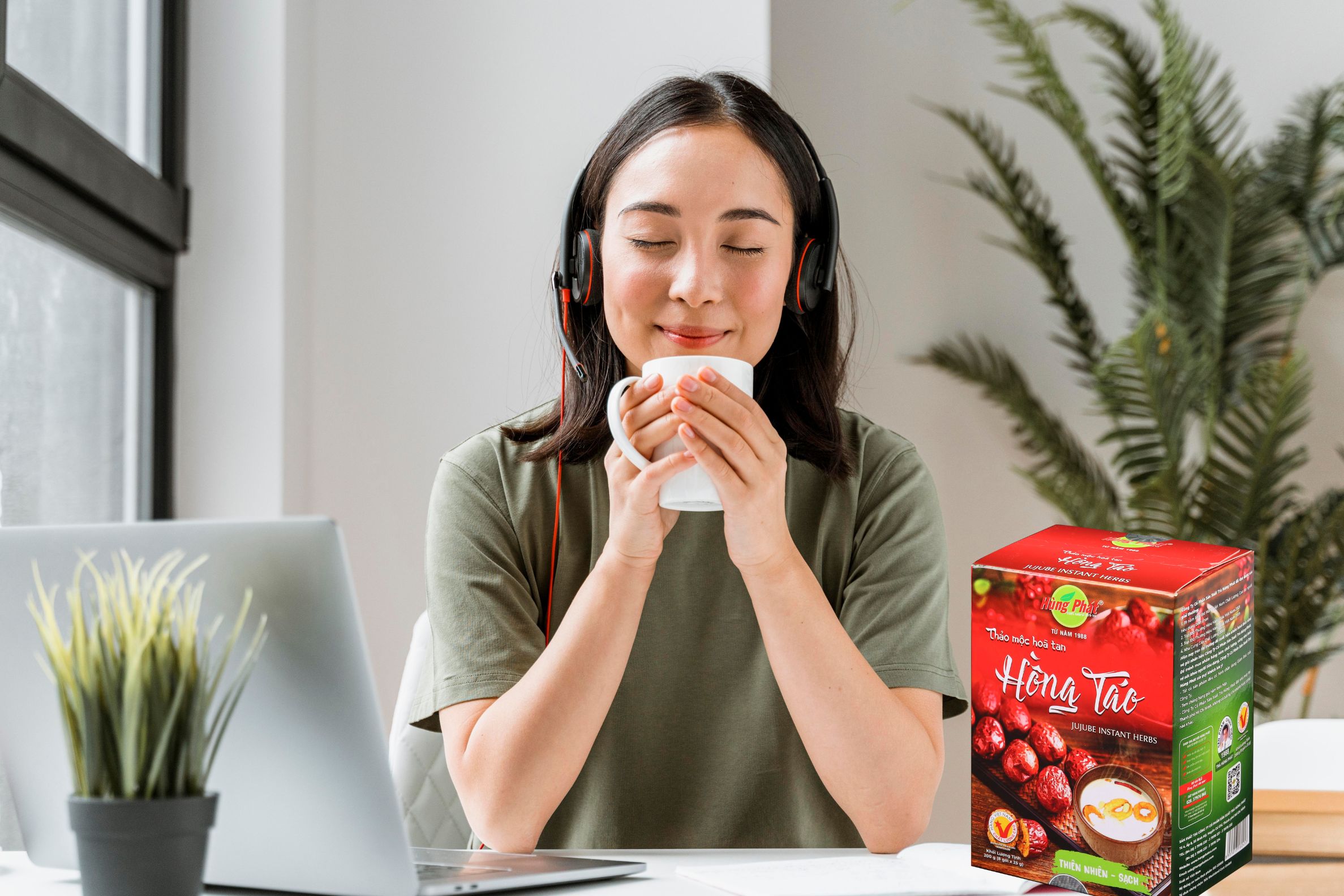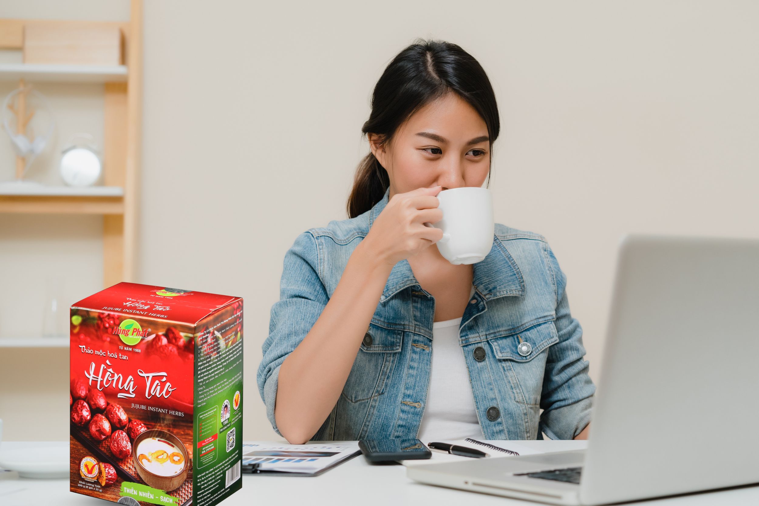 Giữa những giờ làm việc căng thẳng, việc pha một ly Thảo Mộc Hòa Tan Hồng Táo là cách đơn giản để “thở” giữa nhịp sống nhanh.