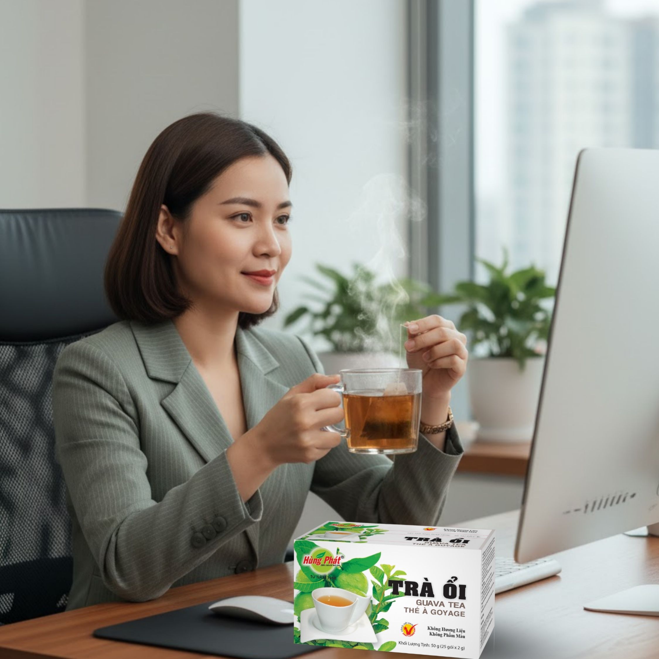 Bạn có thể bắt đầu thói quen thưởng trà mỗi ngày bằng một tách Trà Ổi Hùng Phát – nhẹ nhàng, thuần Việt và tiện lợi cho mọi khoảnh khắc.