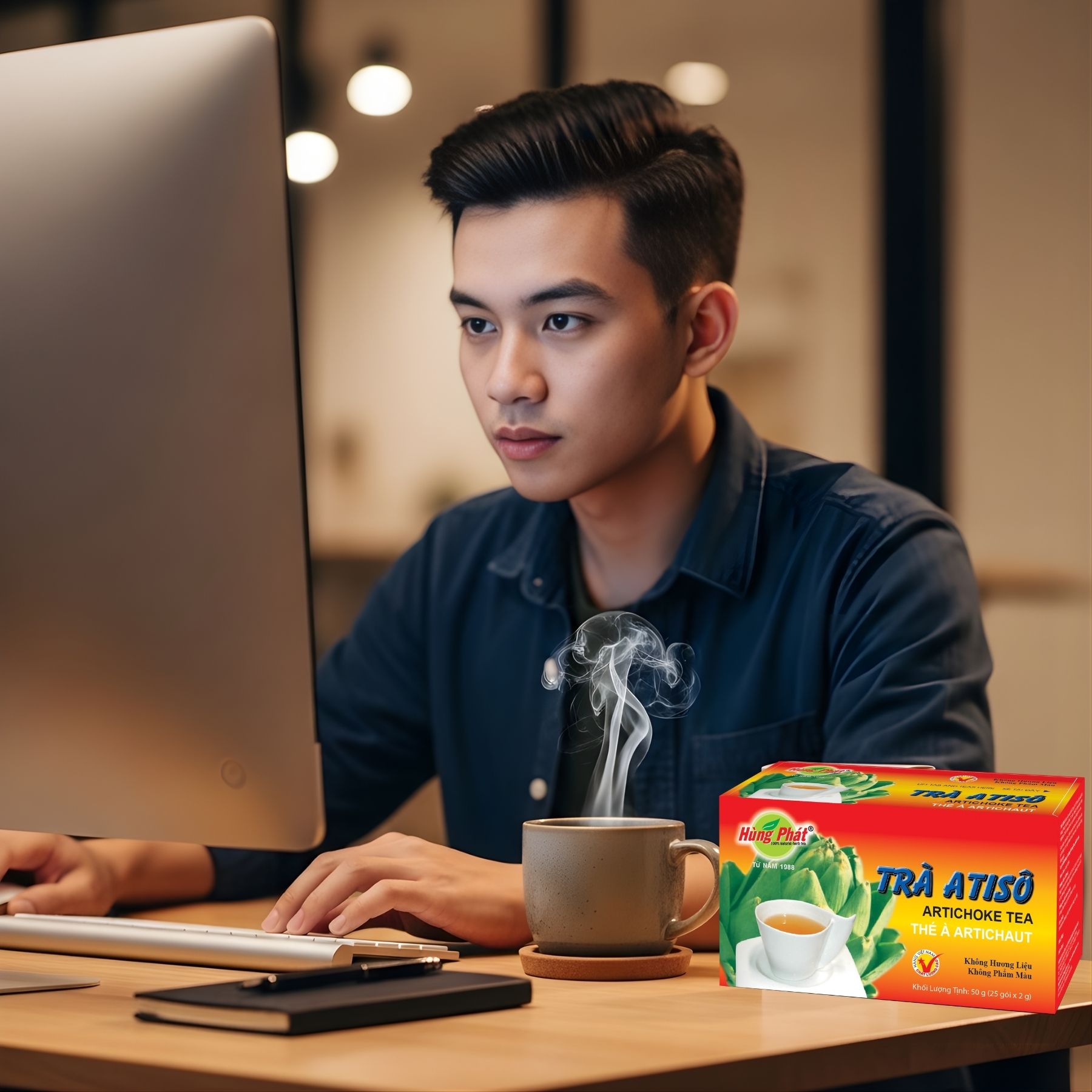 Trong các tòa nhà văn phòng, không khó để bắt gặp hình ảnh những tách trà đặt cạnh laptop, giấy tờ hay lịch trình họp. Với nhiều người, tầm 10 giờ sáng hoặc 3 giờ chiều là thời điểm hoàn hảo để dành vài phút cho bản thân. Trà Atiso phù hợp cho những khoảng nghỉ này bởi hương vị không quá mạnh, không gây nặng khẩu vị, giúp người dùng có thể tiếp tục công việc một cách thoải mái. Sự nhẹ nhàng của tách trà giống như một khoảng lặng để làm mới tinh thần, dù chỉ trong thời gian ngắn.