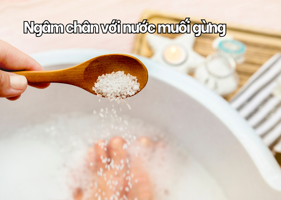 Cách làm: Đun sôi nước với vài lát gừng tươi và một chút muối, sau đó để nguội bớt rồi ngâm chân khoảng 10-15 phút trước khi đi ngủ.