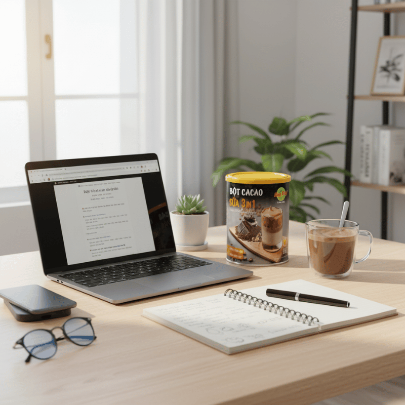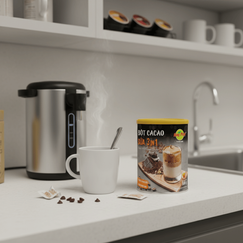 Không gian sử dụng đồ uống giữa giờ làm khá đa dạng. Tại văn phòng, nhiều người pha cacao ngay tại pantry hoặc góc làm việc. Tại nhà, đặc biệt với người làm việc từ xa, cacao trở thành lựa chọn dễ tiếp cận trong những khoảng nghỉ ngắn. Sự linh hoạt trong không gian là một điểm cộng lớn. Người dùng không cần thay đổi thói quen hoặc chuẩn bị thêm dụng cụ. Chỉ cần vài phút, một ly cacao đã sẵn sàng để sử dụng trong bất kỳ không gian nào. Chính sự linh hoạt này giúp Bột Cacao Sữa 3in1 Hùng Phát dễ dàng xuất hiện trong nhịp làm việc hằng ngày, dù là tại văn phòng hay tại nhà.