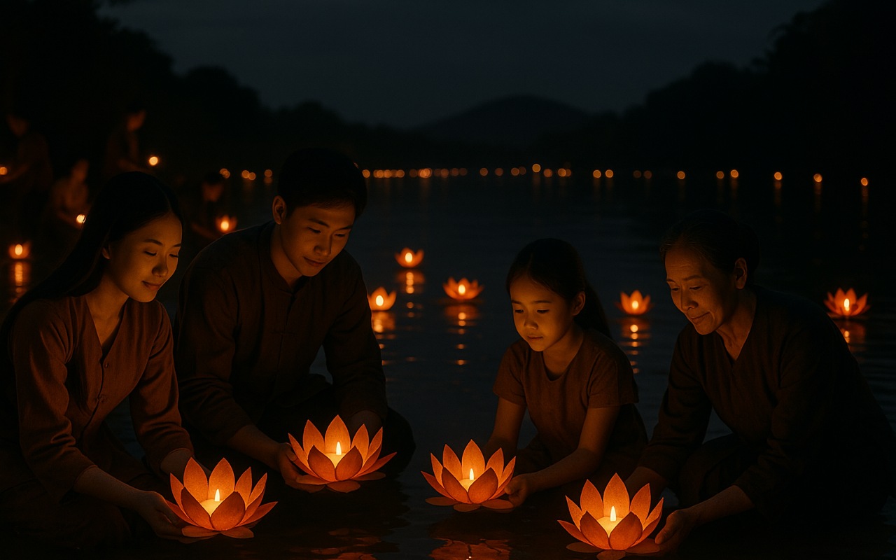 2.2 Thả Đèn Hoa Đăng – Biểu Tượng Của Ánh Sáng Và Tình Yêu Thương