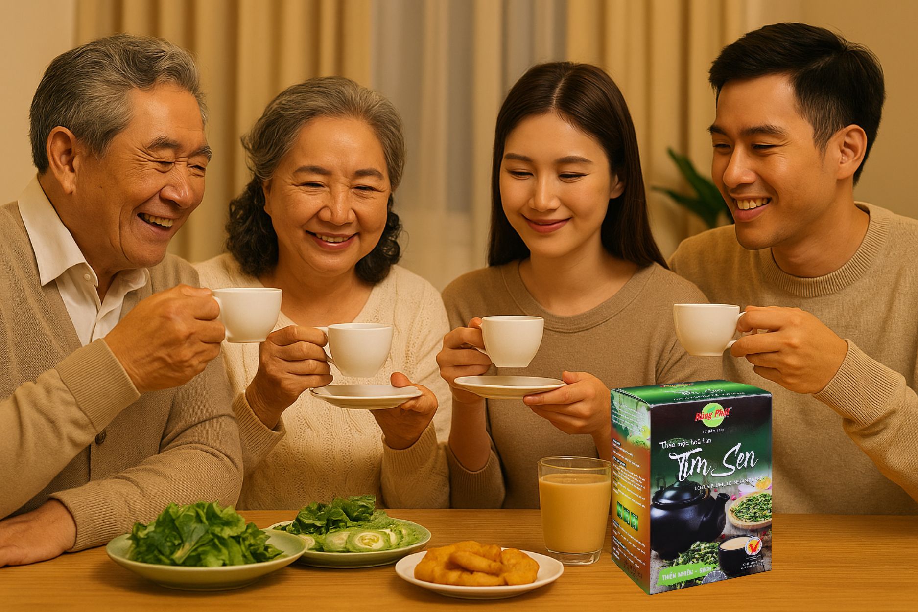 Thưởng thức Thảo Mộc Hòa Tan Tim Sen Hùng Phát – thức uống tự nhiên dành cho những ai đang sống có ý thức, biết lắng nghe cơ thể và trân trọng từng khoảnh khắc hiện tại.