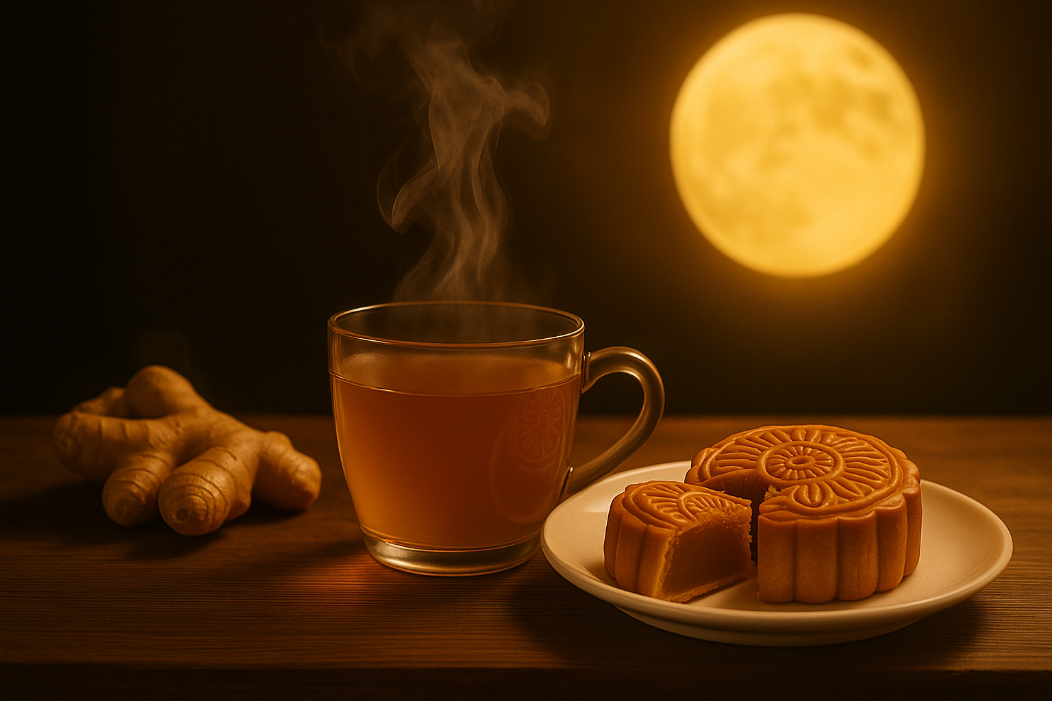 Một buổi tối Trung Thu, khi ông bà ngồi cùng con cháu bên mâm cỗ, tách trà gừng nóng hổi chính là lời nhắc nhở rằng sức khỏe của họ luôn được con cháu quan tâm. Mỗi ngụm trà cay dịu không chỉ làm ấm cơ thể mà còn làm ấm cả bầu không khí gia đình. Trong vòng tròn đoàn viên, ly trà gừng trở thành biểu tượng của sự kết nối – giản dị nhưng đầy ý nghĩa.
