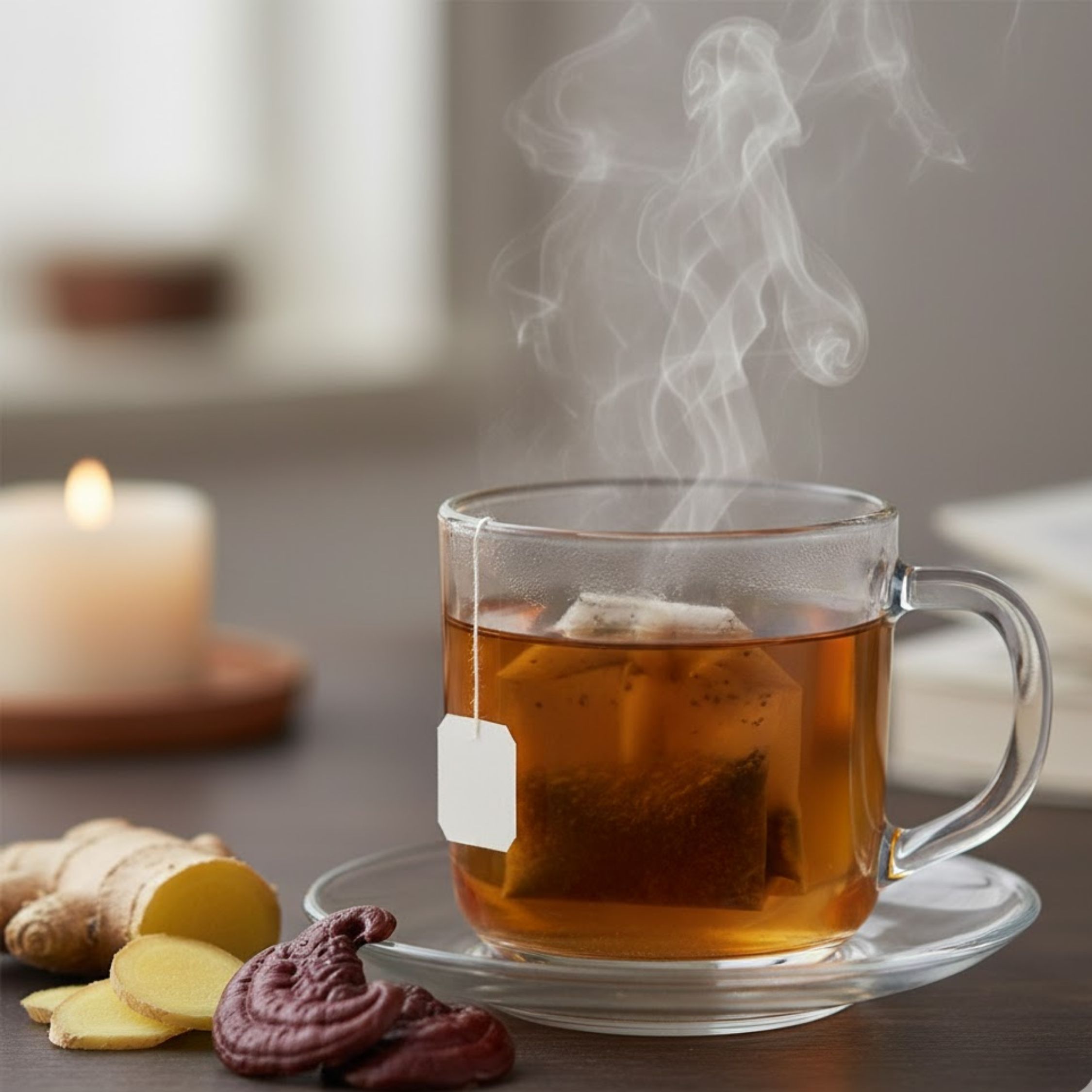 Không cần tìm kiếm điều gì to tát, một ngụm trà gừng ấm cũng có thể khiến tâm trí lắng xuống. Vị gừng Việt lan nhẹ, xen lẫn hương linh chi dịu ngọt, tạo nên cảm giác thư thái dễ chịu. Đó không phải là sự kích thích mạnh mẽ, mà là một dòng chảy êm dịu – giúp cơ thể và tâm trí hòa vào nhịp chậm, tĩnh và trọn vẹn.