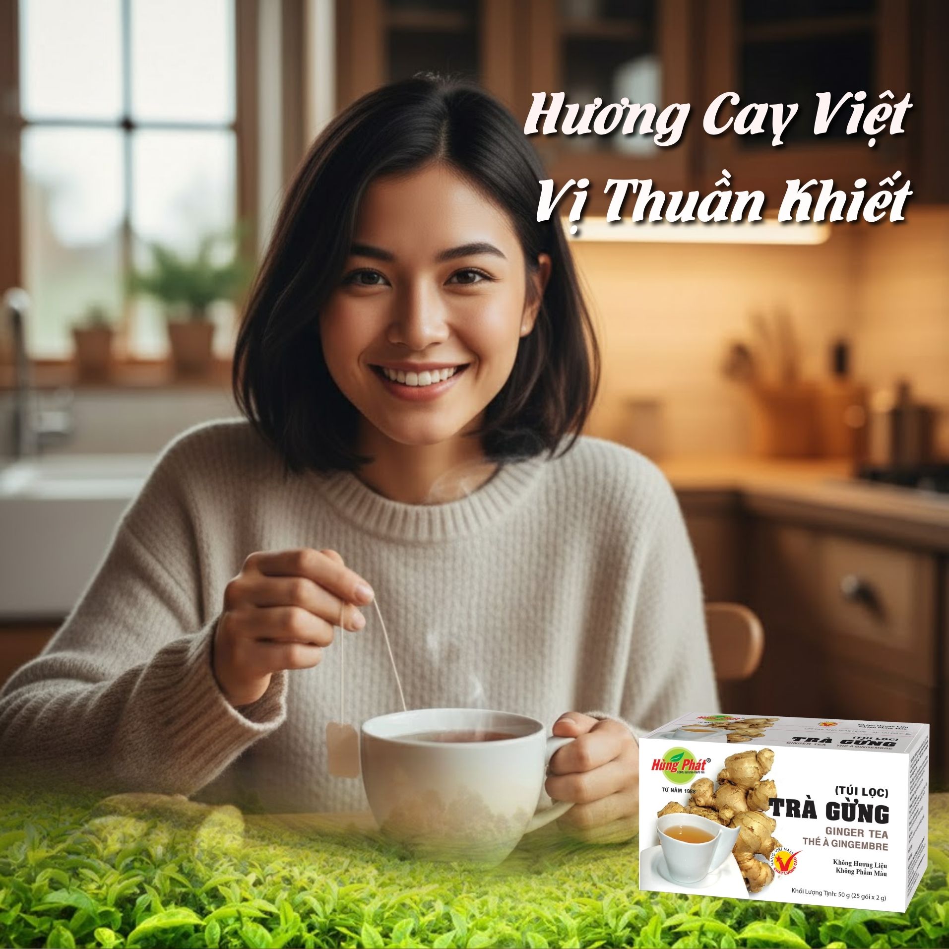 Trà Gừng Túi Lọc Hùng Phát không phẩm màu, không hương liệu, không chất bảo quản, đáp ứng tiêu chuẩn an toàn thực phẩm, phù hợp cho cả người lớn tuổi lẫn người trẻ ưa chuộng lối sống xanh. Đây không chỉ là sản phẩm, mà còn là cam kết về sự minh bạch, uy tín và lòng tự hào của một thương hiệu Việt hơn ba thập kỷ.