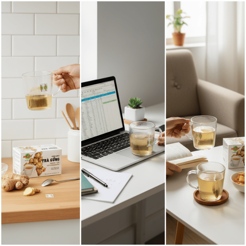 Có những gia đình vẫn giữ thói quen pha một tách trà gừng vào những ngày thời tiết chuyển lạnh. Không phải để làm điều gì đặc biệt, mà chỉ đơn giản là để có một thức uống quen thuộc trên bàn. Với người đi làm, trà gừng đôi khi xuất hiện trong giờ nghỉ ngắn, như một khoảng dừng nhỏ giữa những công việc nối tiếp nhau. Những khoảnh khắc ấy không cần phải được gọi tên, cũng không cần gắn với những ý nghĩa lớn lao. Trà gừng chỉ đơn giản là ở đó, hiện diện một cách tự nhiên trong đời sống, đủ để người ta cảm thấy dễ chịu hơn trong những ngày bình thường.