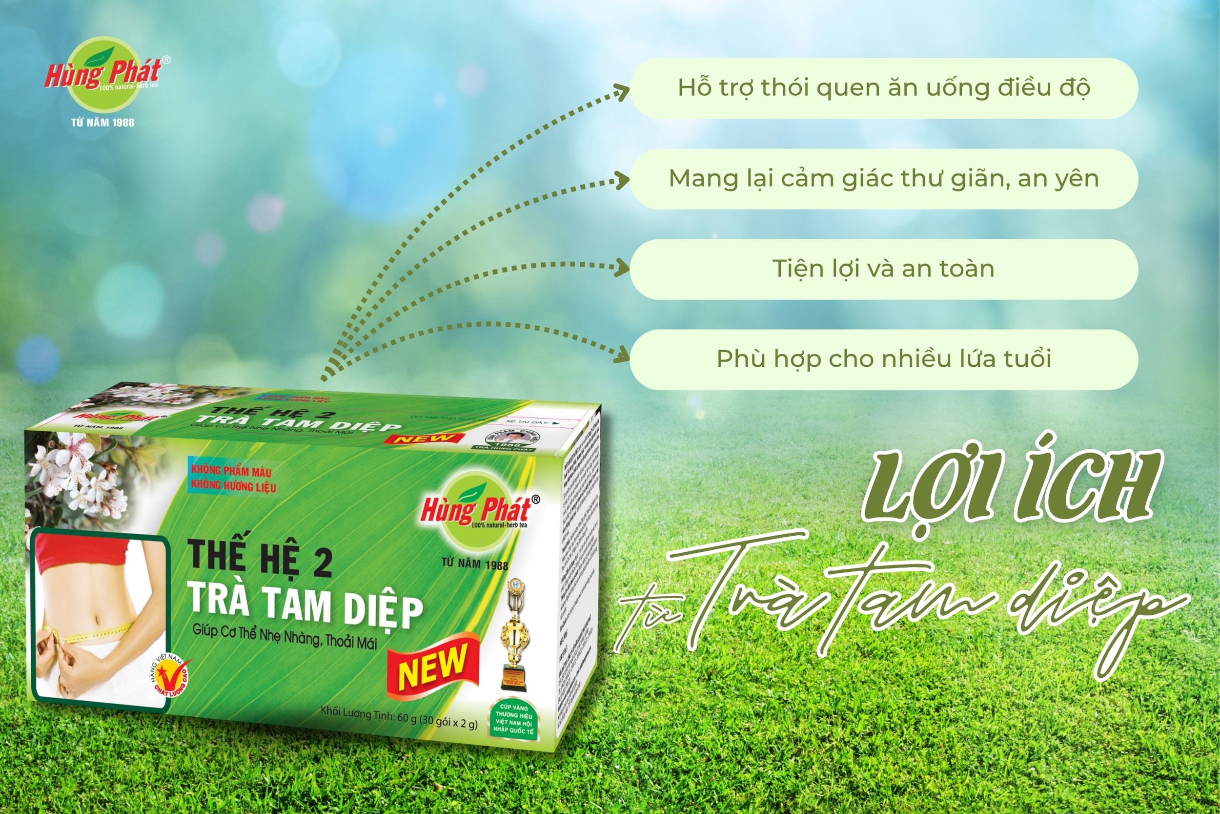 Trong nhịp sống hiện đại, mỗi người đều tìm cho mình những thói quen nhỏ để giữ sự cân bằng. Với Trà Tam Diệp Thế Hệ 2, Hùng Phát mong muốn mang đến không chỉ một tách trà thảo mộc, mà còn là một nghi thức an lành, gắn liền với từng khoảnh khắc sum vầy hay giây phút tĩnh lặng. Mỗi gói trà được tạo nên từ tâm huyết của một thương hiệu đã 37 năm đồng hành cùng sức khỏe người Việt, là lời cam kết về sự uy tín, chất lượng và niềm tin lâu bền.