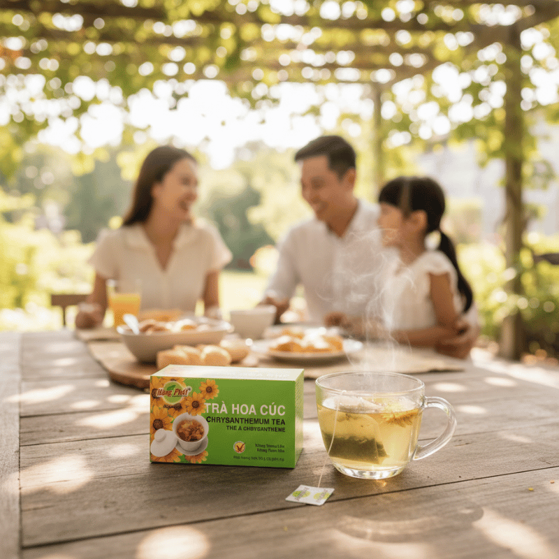Ban đầu, uống trà có thể là thói quen cá nhân. Nhưng theo thời gian, thói quen ấy dễ lan tỏa sang không gian gia đình. Một tách trà buổi tối, một ấm trà đặt trên bàn, dần trở thành hình ảnh quen thuộc trong nhiều gia đình. Trong những khoảnh khắc ấy, Trà Hoa Cúc Hùng Phát hiện diện như một phần của sinh hoạt chung. Trà không làm trung tâm của câu chuyện, nhưng góp phần tạo nên không gian đủ yên để các thành viên ngồi lại với nhau. Từ đó, thói quen uống trà không chỉ là lựa chọn cá nhân, mà trở thành nếp sinh hoạt mang tính gắn kết.
