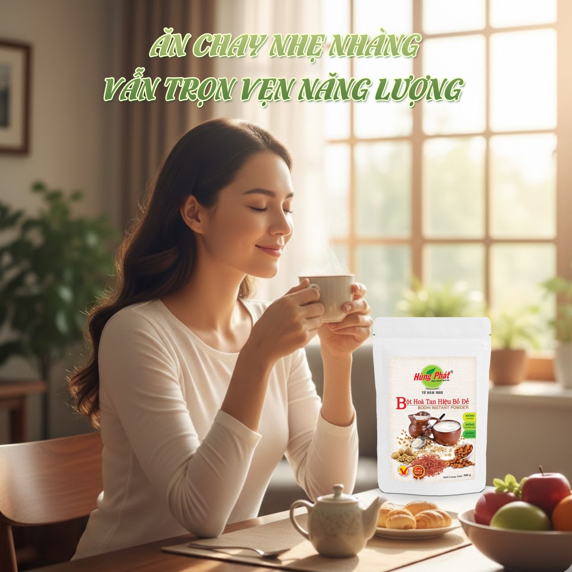 Trải nghiệm hương vị mộc mạc – thuần chay – tinh giản của Bột Hòa Tan Hiệu Bồ Đề Không Đường tại các kênh chính thức của Hùng Phát: